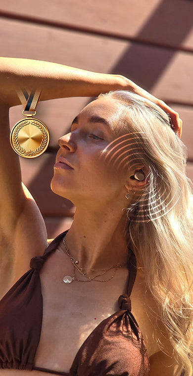 Il Golden TinyS unisce tecnologia ed eleganza in una forma tanto comoda da indossare quanto da guardare. Audio di qualità. Stile senza sforzo. Il lusso di tutti i giorni in una confezione piccola.
